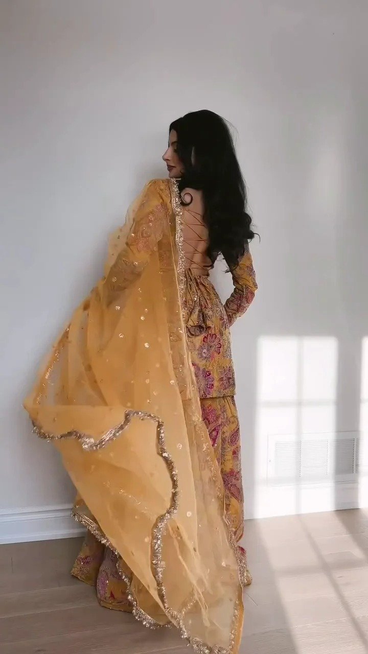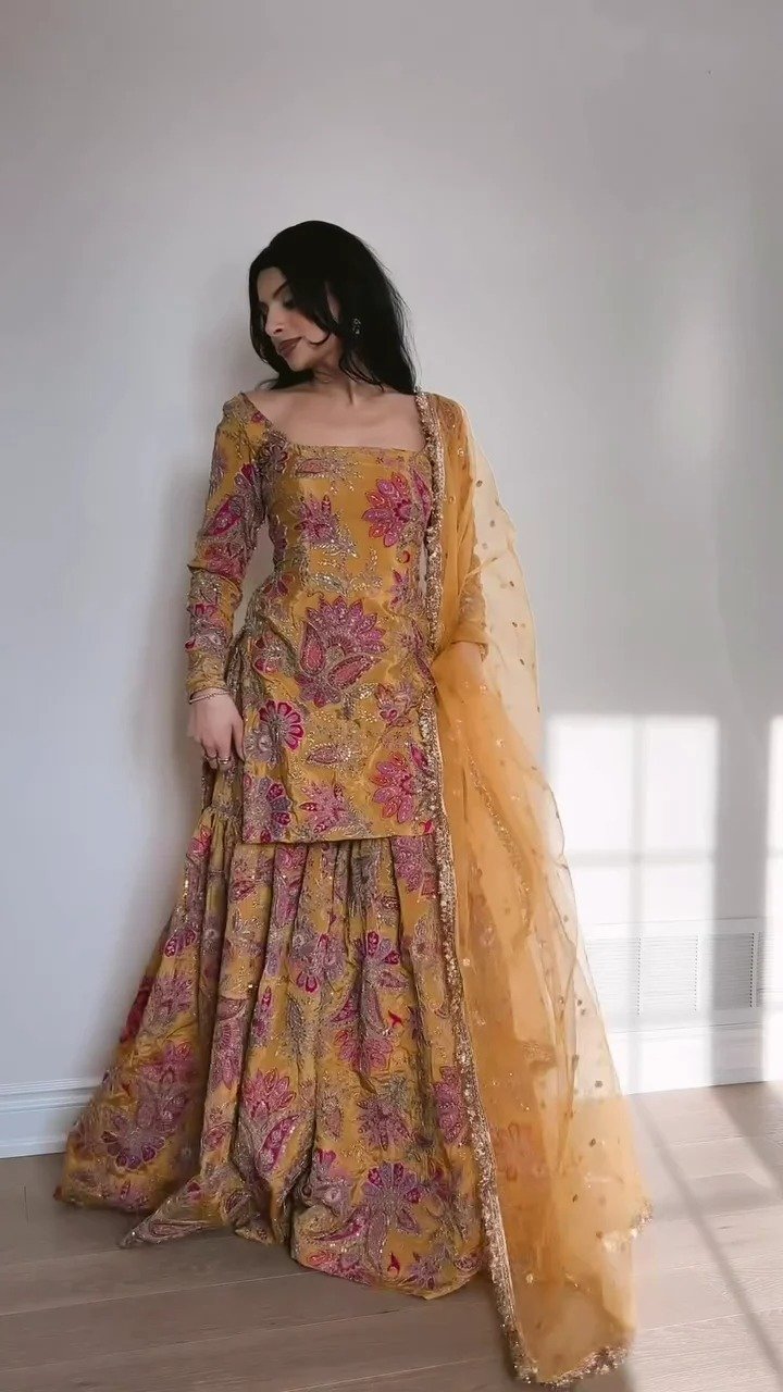 High-Volume Flare: Crafted from high-quality fabric that provides a voluminous flare (ghera), ideal for twirling at weddings or parties.